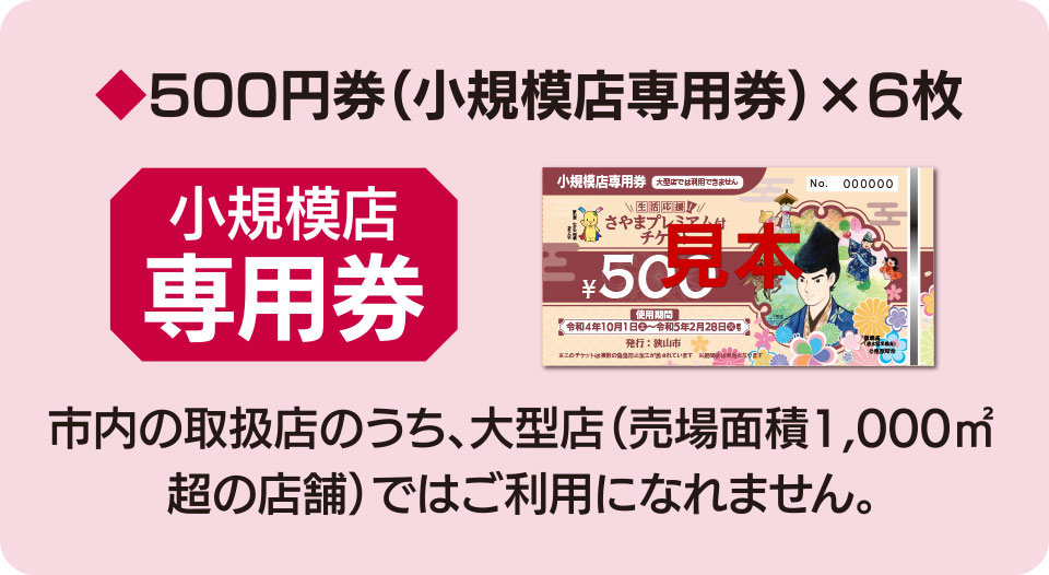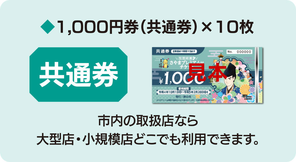 「さやチケ」とは10,000円で購入できる、13,000円分つかえる30%プレミアム付の商品券です。