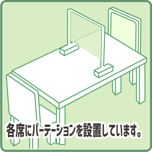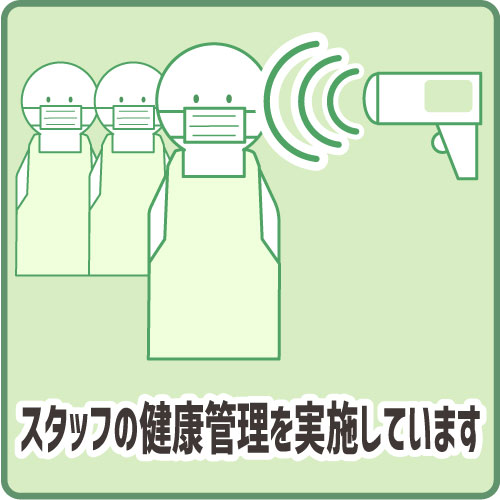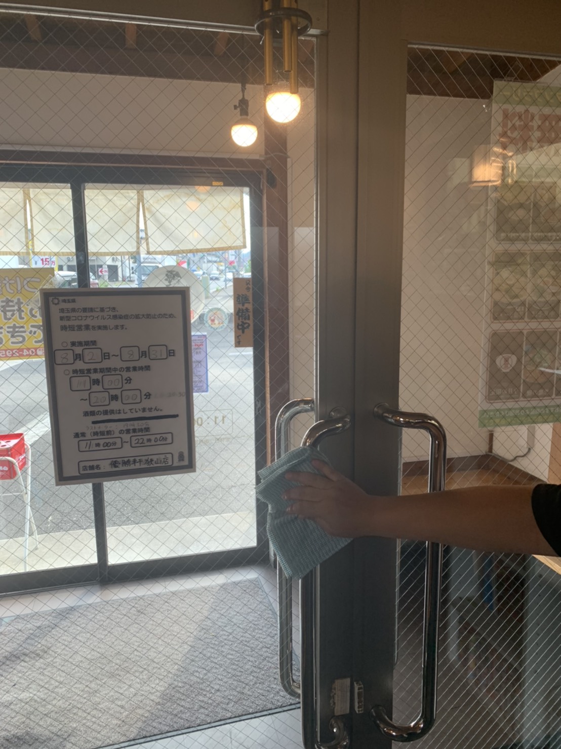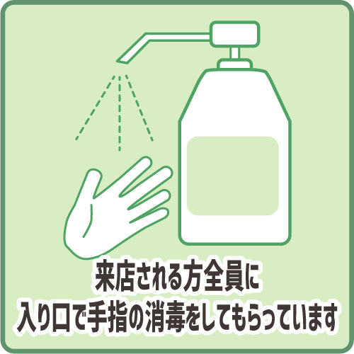 こまめのアルコール除菌消毒、営業中ずっと換気しております。